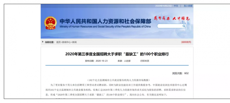 排行榜还显示,制造业复苏明显,人才需求旺盛;学校复学带来教师缺口加大。在新进排行28个职业中,有19个与制造业直接相关,占比67.9%,如“仪器仪表制造工”“真空电子器件零件制造及装调工”“金属材料工程技术人员”“汽车零部件再制造工”等;短缺程度加大的15个职业中,有5个职业与制造业直接相关,占比30%,如“铣工”“装配钳工”“工具钳工”等。随着中小学开学季来临,“中学教育教师”“小学教育教师”也首次进入排行。