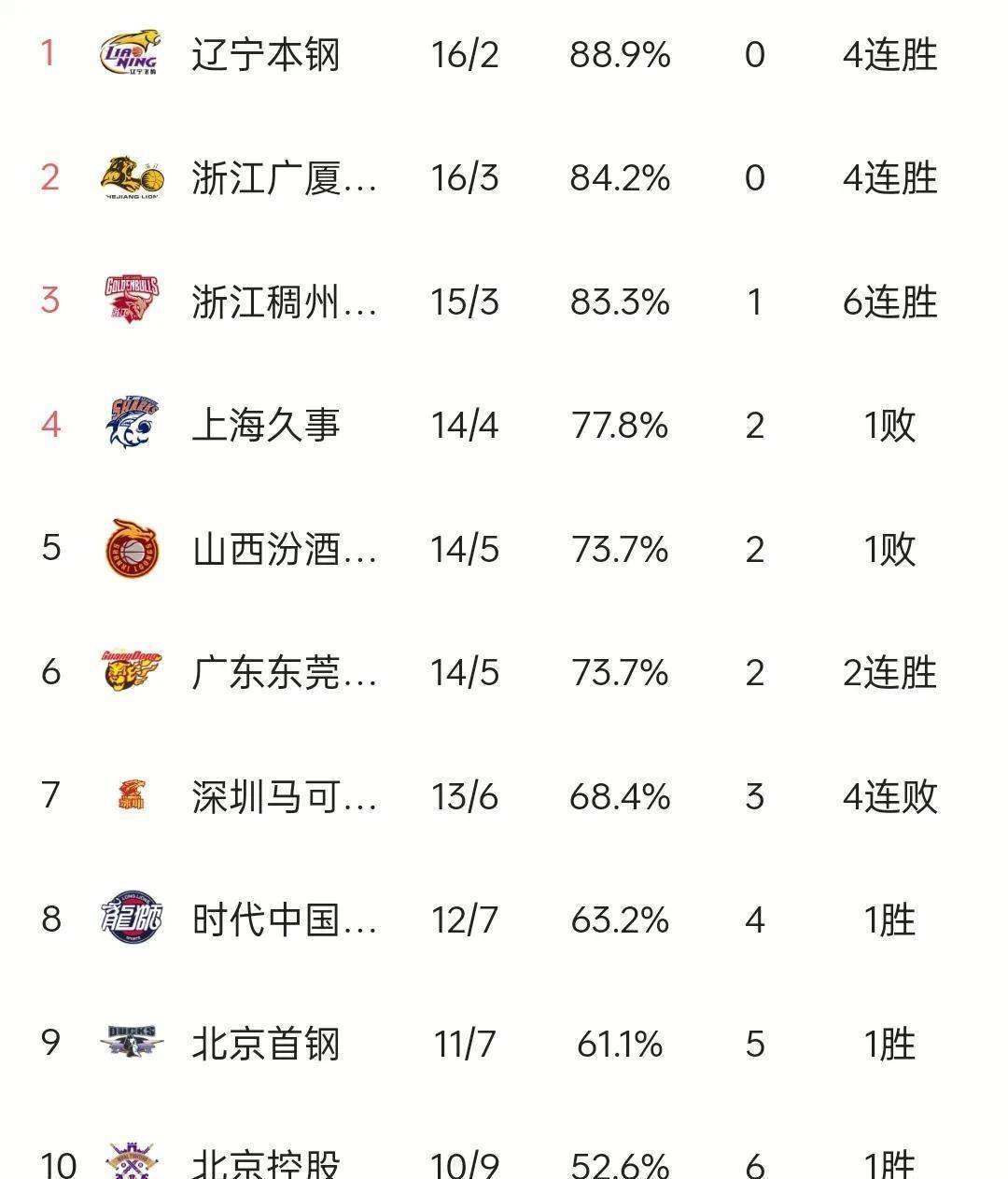 原标题:CBA最新排名丨广厦四连胜紧追辽宁 北控双杀四川力保前十