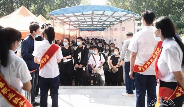 开学报到工作层序分明,每个步骤都有专门人员管理及服务。入校门时,人车分流,学生和家长都需要测量体温、扫描吉祥码、佩戴口罩。走进校园,各个服务台分工明确,经志愿者引导可一站式办理所有入校手续。由于新生报到人数较多,学校采取了适当的人流控制措施,确保新生报到安全有序,全面保障报到流程畅通无阻。
