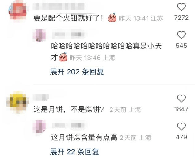 网友表示:“这是月饼,不是煤炭嘛”“这月饼含煤量有点高” “吃它不得再配个火钳呀”。