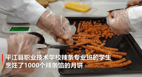 据中国新闻网报道,9月8日,湖南省平江县职业技术学校辣条专业班的学生,烹饪了1000个辣条馅的月饼,在午饭时间赠送给全校的师生品尝,用这种方式迎接中秋佳节的到来。带有童年记忆的辣条月饼,有没有吸引到你呢?