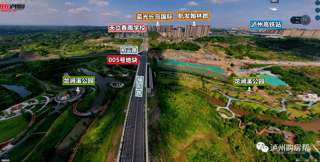005号地块位于城北新城柏云路与福阳路交叉口西侧,紧邻龙涧溪公园、泸州天立春雨学校。