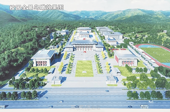 学校大门前贴有学校的简介,可以看到校区的鸟瞰效果图,也就是学校建成后的大致模样。