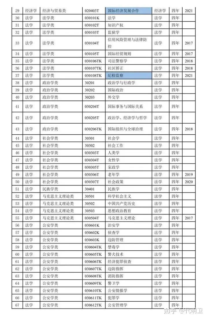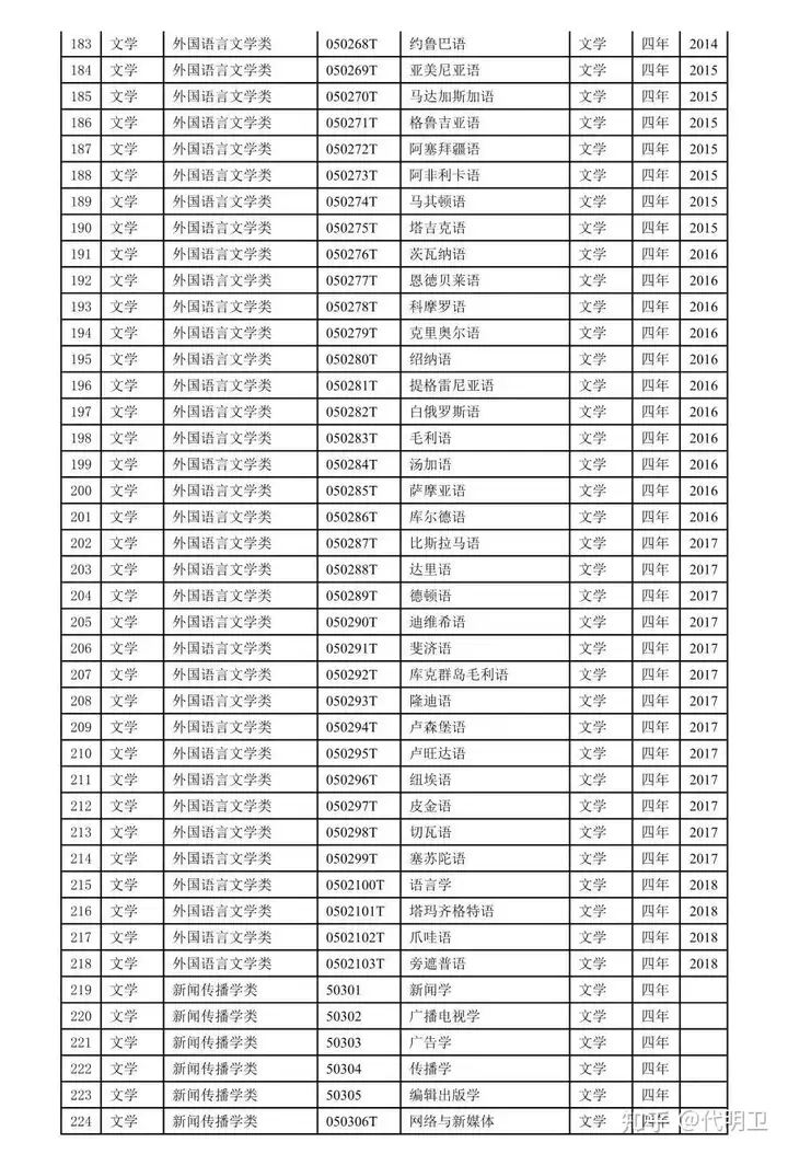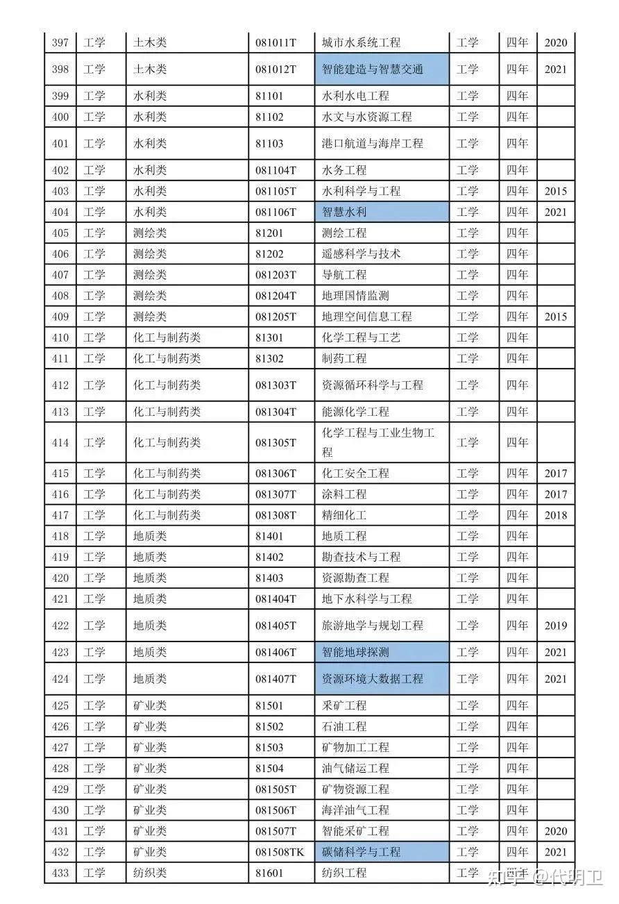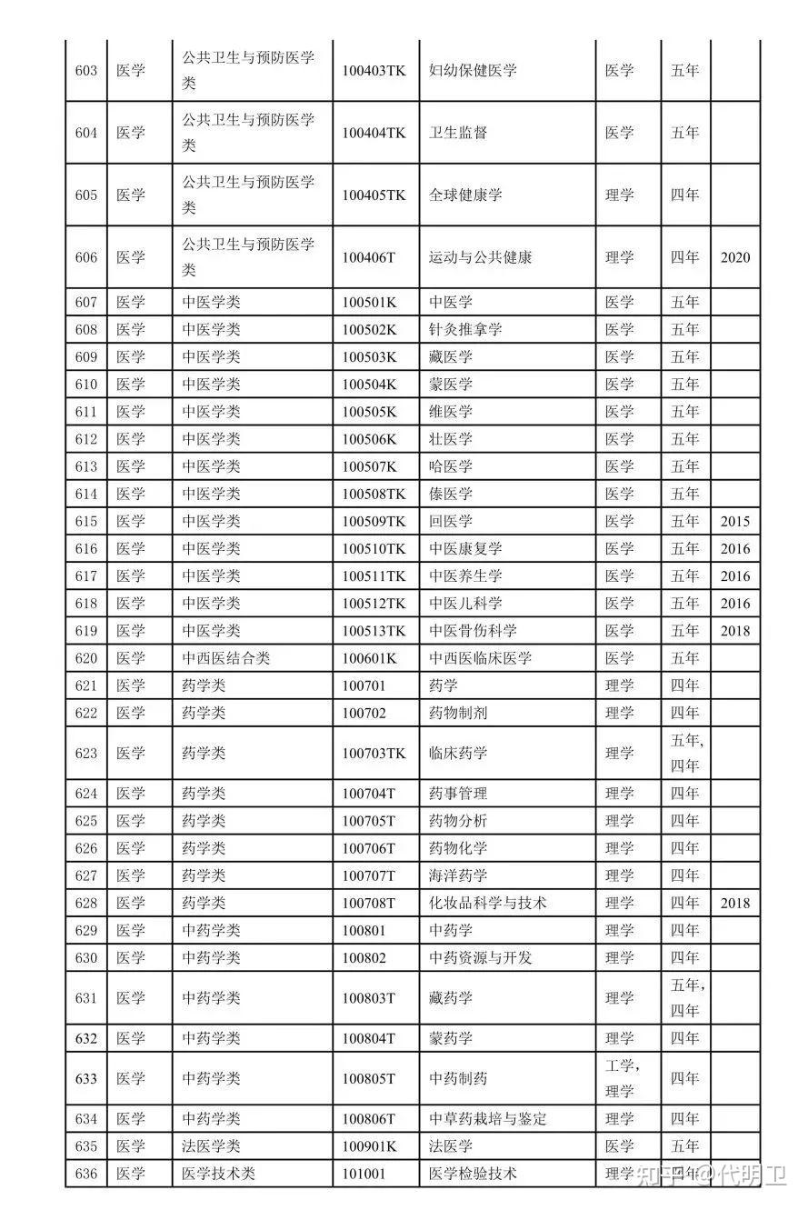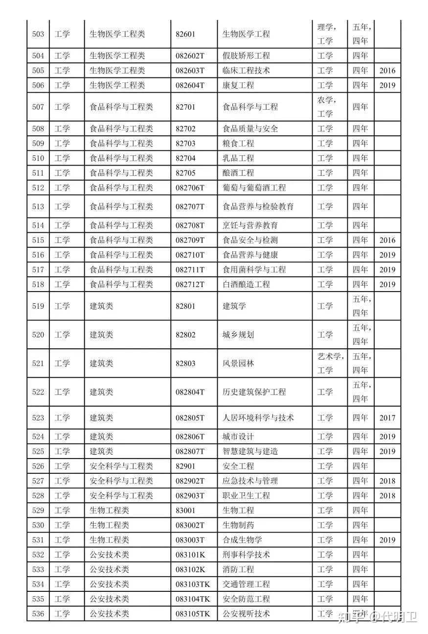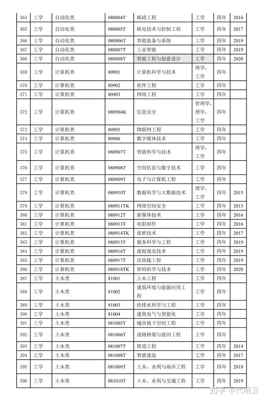 注:专业代码后加“T”的为特设专业,加“K”的为国家控制布点专业。