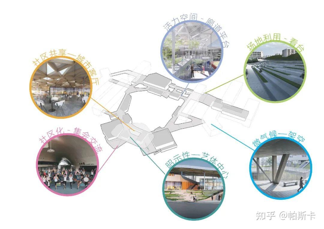 在新职业学校的功能布局策略上:职业学校追求产教融合,即理论知识与社会实践的无缝连接,整个职业校园更应体现其融入社区的特色,学校不再是社区当中的文化孤岛,而应该是社区的文化互动中心,因此设计也强调校园重要公共文化设施与社区共享,形成良性的社区互动,将校园打造为社区的公共文化会客厅和终生学习的共享空间。