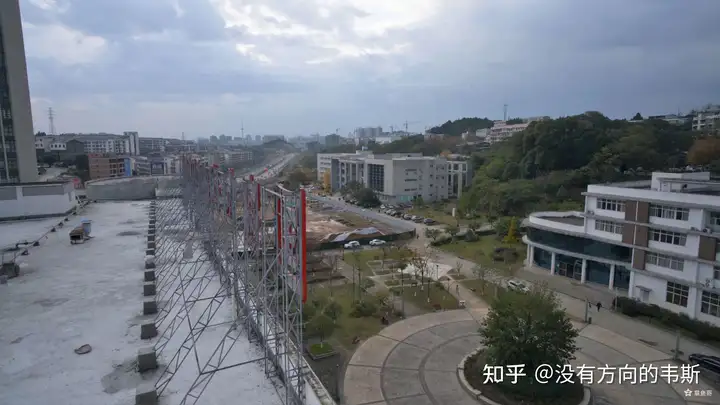 左下角那个建筑是智慧教室,平常有些活动会在那里举行左中是食堂,好几层,一楼二楼为食堂,上面就是活动场地,左上那个高楼是学校新修的楼,我是没机会用了,下一届的学弟学妹能用上。