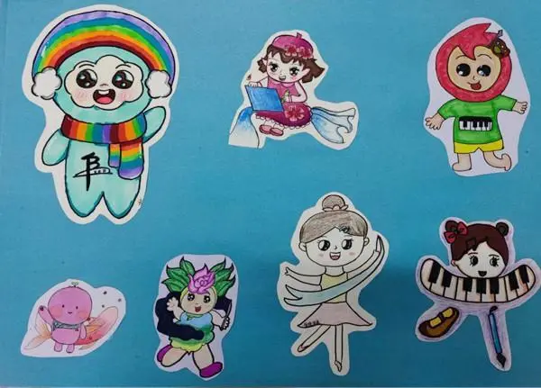 幼师专业的学生,还利用琴键、舞鞋、画笔、音符等组合,设计出学前教育专业的吉祥物,体现了学生的多才多艺、样样精通。