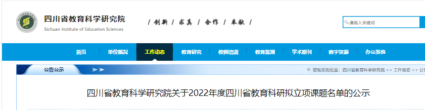 近日,四川省教育科学研究院官网发布了《关于2022年度四川省教育科研拟立项课题名单的公示》。