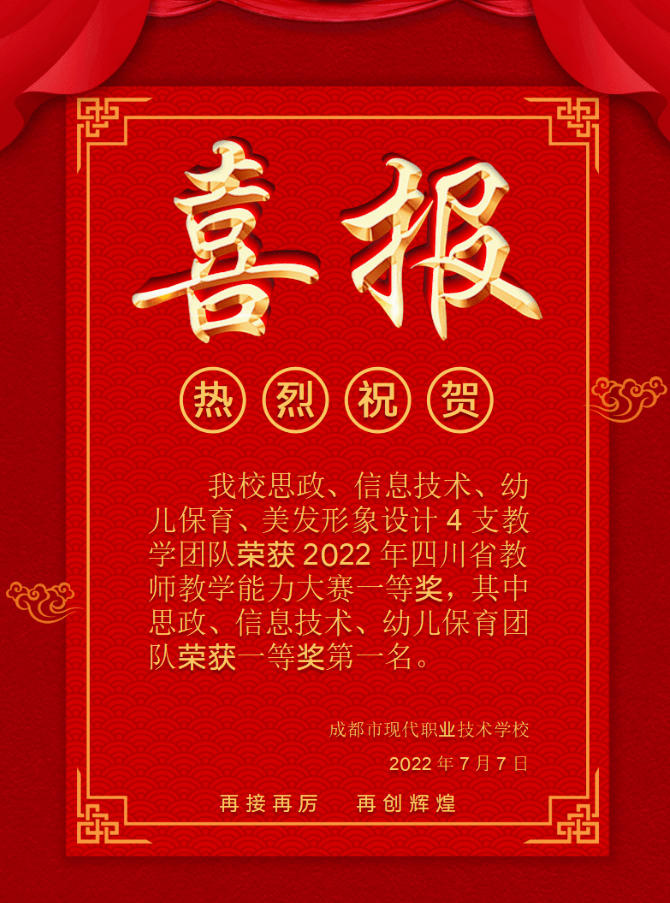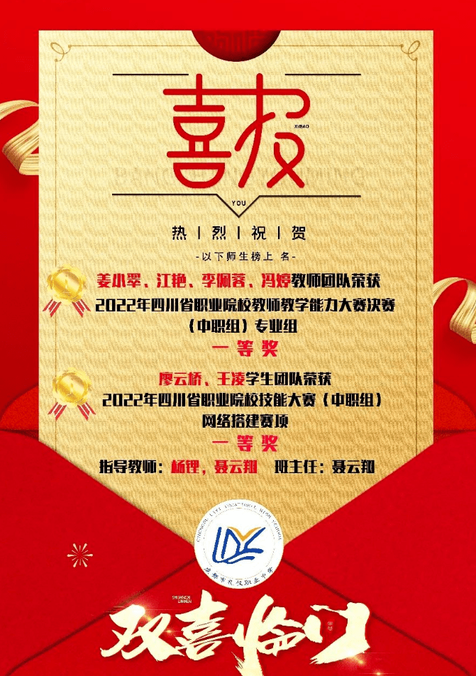 双流建校建筑专业教师团队获2022年四川省职业院校教师教学能力大赛(中职组)一等奖!航空物流专业刘婷老师跨校组队参赛获2022年四川省职业院校教师教学能力大赛(中职组)一等奖。