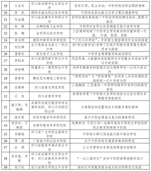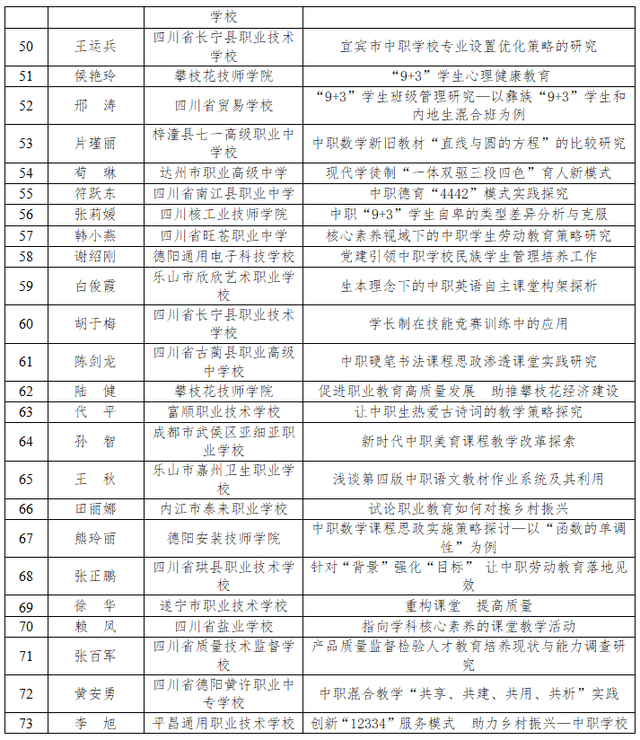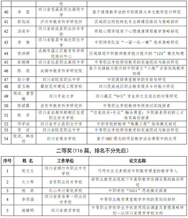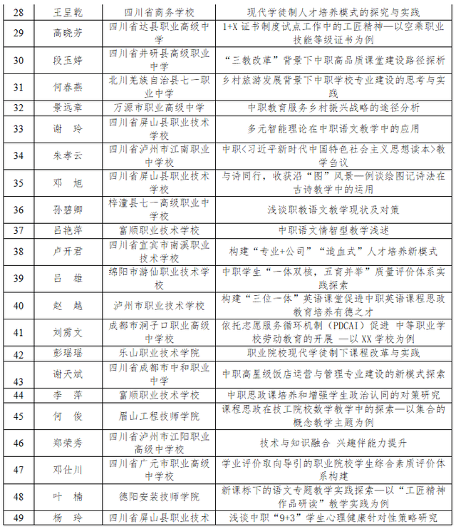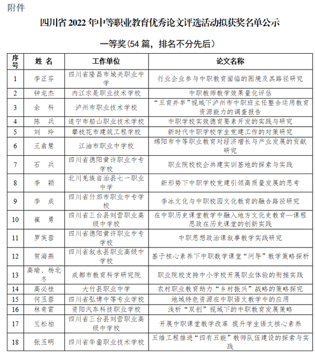 近日,四川省教育科学研究院办公室发布了《关于四川省2022年中等职业教育优秀论文评选结果的公示》。
