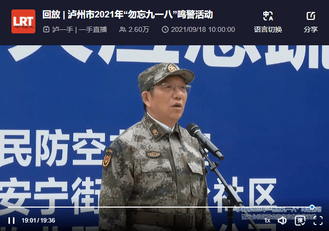 在微赞平台回放的泸州市“勿忘九一八”鸣警直播活动中,老兵丰贵明有些哽咽的说到,“当防空警报拉响时,我就想起了‘九一八’事变,想到当时中国受到的屈辱,我们每个人都要牢记那段历史。”他希望年轻人努力奋斗,把祖国建设得越来越好。