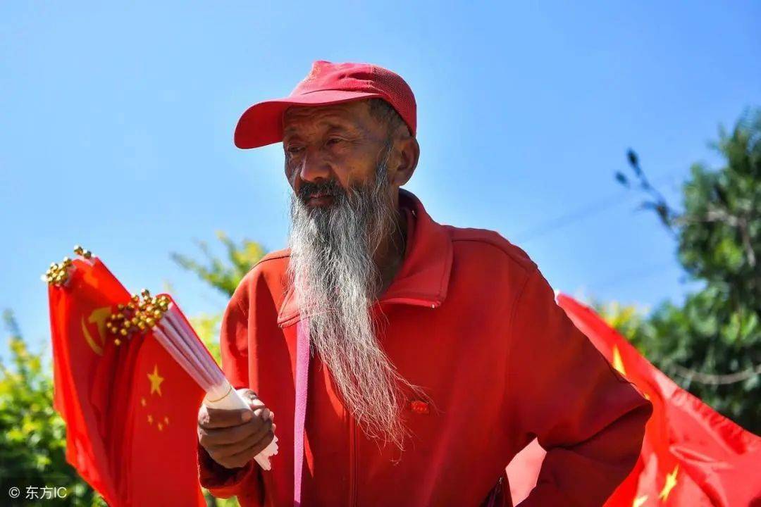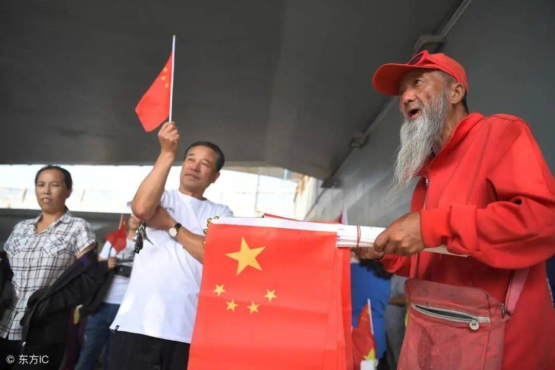 原标题:大爷街头挥舞五星红旗:永远不要忘记