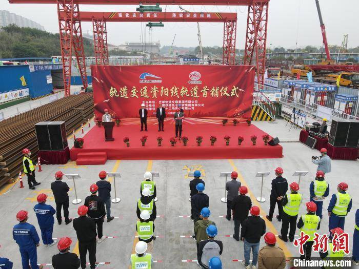 中新网成都11月3日电 (记者 刘忠俊)11月3日,四川轨道交通资阳线资阳北站铺轨基地首节25米轨排平稳铺设,标志着该线正式进入铺轨施工阶段,预计2024年建成。