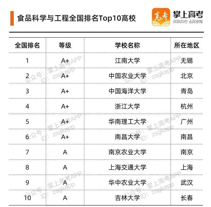 在2021年软科中国大学专业排名榜单中,共有115所院校的食品科学与工程专业上榜。Top 10 院校排名如下: