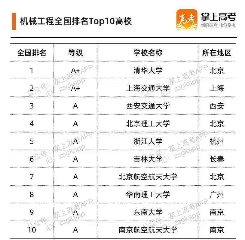 在2021年软科中国大学专业排名榜单中,共有68所院校的机械工程专业上榜。Top 10 院校排名如下: