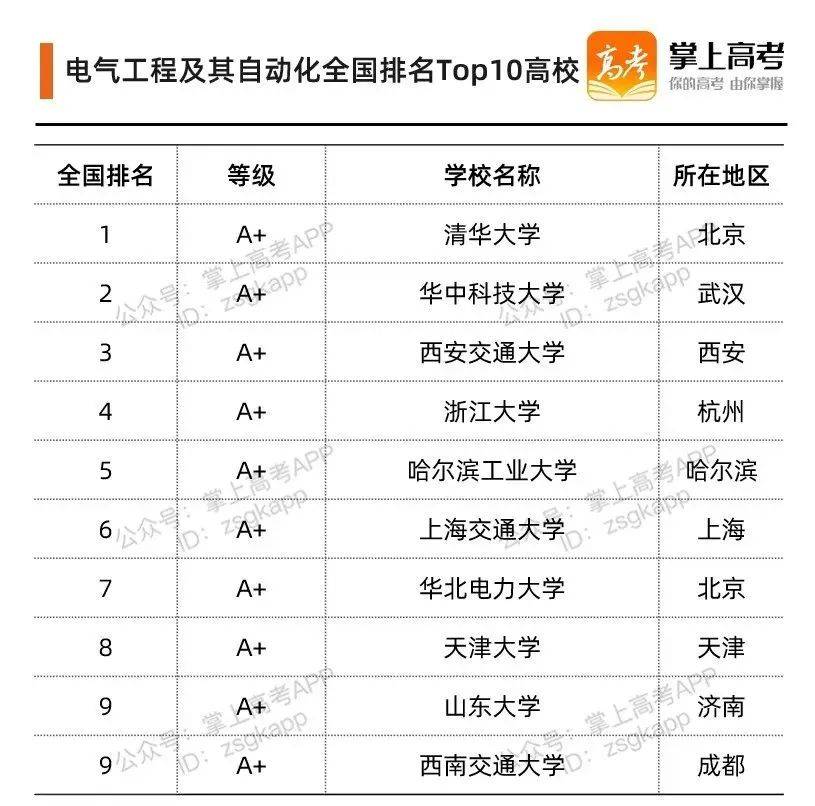 在2021年软科中国大学专业排名榜单中,共有298所院校的电气工程及其自动化专业上榜。Top 10 院校排名如下: