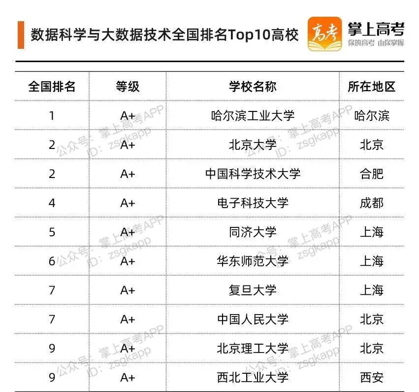 在2021年软科中国大学专业排名榜单中,共有309所院校的数据科学与大数据技术专业上榜。Top 10 院校排名如下: