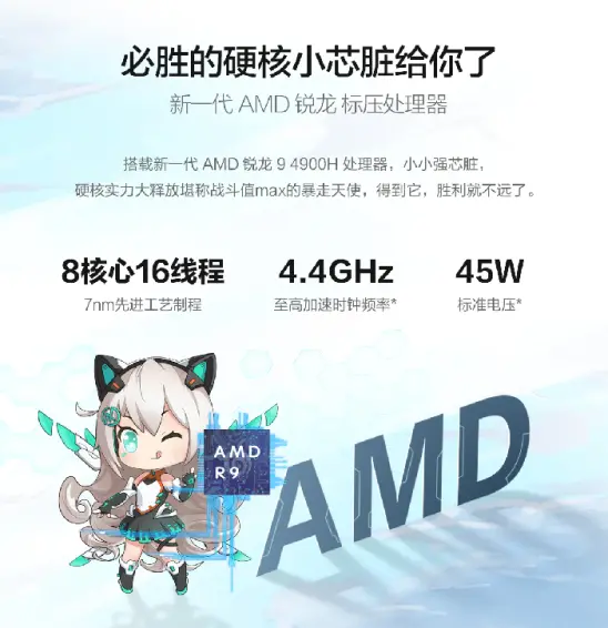 天选搭载的AMD旗舰版移动处理器锐龙9-4900H,有着8核心16线程的架构,领先的7nm工艺,基础频率3.3GHz,最高频率4.4GHz,同时TDP仅为45W。用更低的功耗带来了同样强大的性能,在稳定性方面更是有所提升,对于需要长时间作业的深度学习来说正是最佳选择。为了获得更高的运行效率,华硕天选游戏本还预置了16GB双通道内存,能加载更加复杂的任务,提供更好的稳定性,加快运算速度,提高工作效率。预装的512GB PCle SSD,提供了更快的文件读取速度,同时预留2.5"硬盘接口,以便用户自行扩充存储空间。
