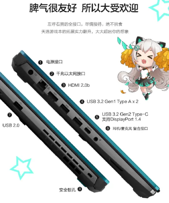 天选游戏本还提供了包括HDMI 2.0b、千兆以太网接口以及双USB 3.2 Gen 1/Gen 2迅捷接口在内的全接口配置,对于经常需要宿舍教室来回跑的学生来说,更好的扩展性也能方便许多,无论是投影PPT还是传输文件都可以轻松搞定。
