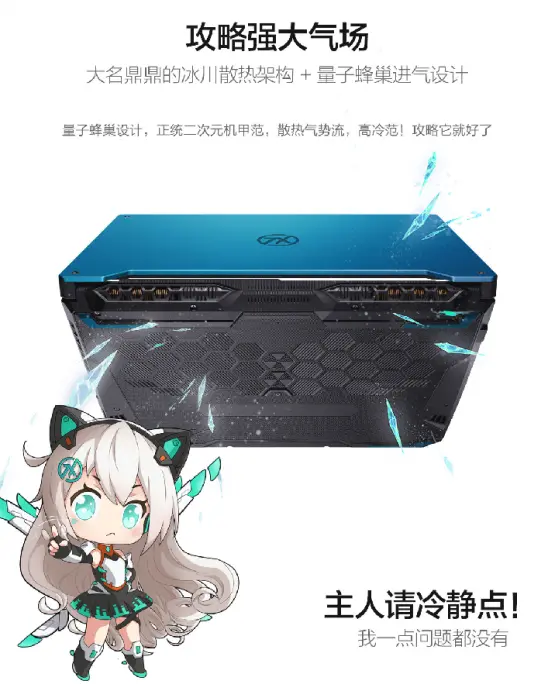 为了确保系统能长时间高效稳定运行,天选游戏本搭载了冰川散热结构,配合机身梯形切割设计,可以将散热能力进一步提升。冰翼超薄散热片带来了更大的散热面积,量子蜂巢结构提供了更大的进气量,还有暴风智能增压系统,可以一键切换散热模式,长时间运行也依然保持冷静。
