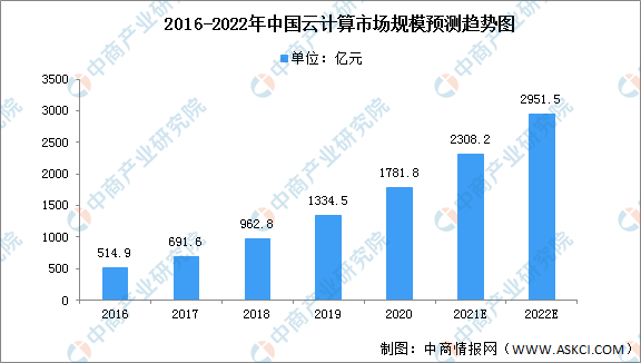 随着我国数字经济的发展,全社会向数字化转型,云计算在工作和生活各方面的渗透得到了大幅提升,市场规模持续扩张,云计算产业呈现稳健发展的良好态势。据统计,2019年我国云计算整体市场规模达1334亿元,增速38.6%;到2022年市场规模将接近2951.5亿元,未来我国云计算市场仍将保持快速增长(数据来源:中商产业研究院发布的《中国云计算行业市场前景及投资机会研究报告》)。