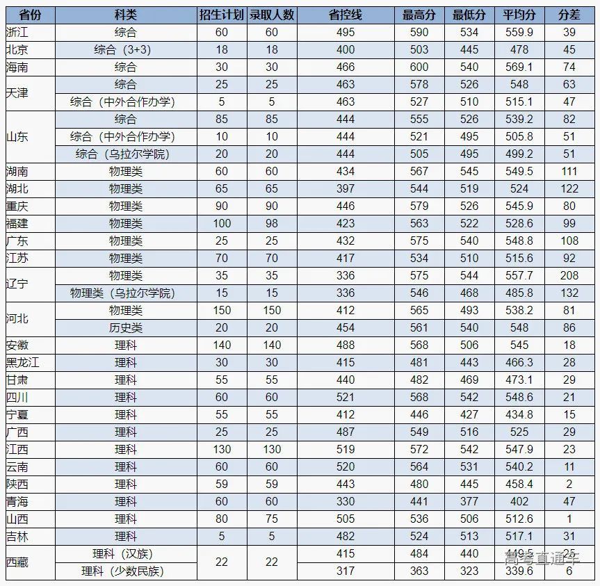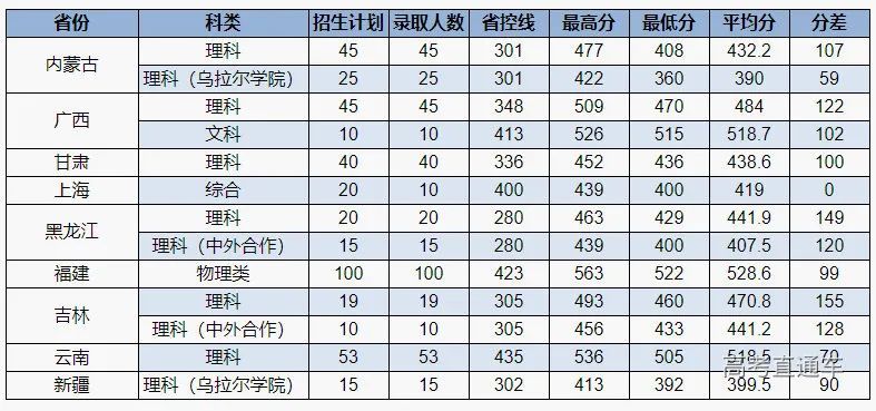 2021年外省本科二批各省份录取情况一览表: