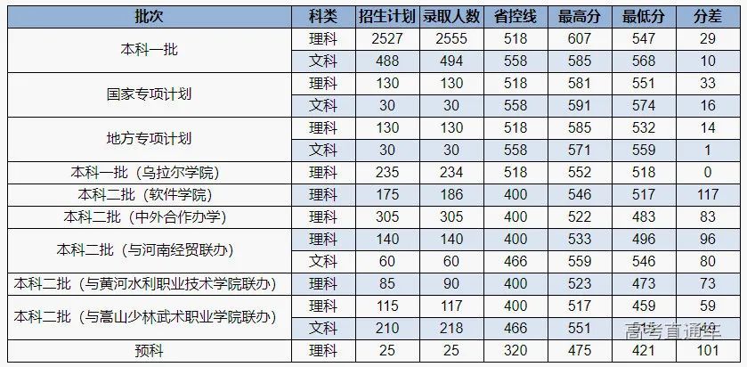 2021年河南省各批次录取情况一览表: