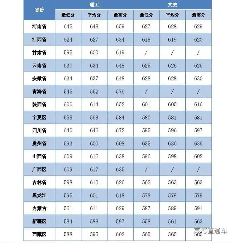 西北工业大学2021年在各省分数线: