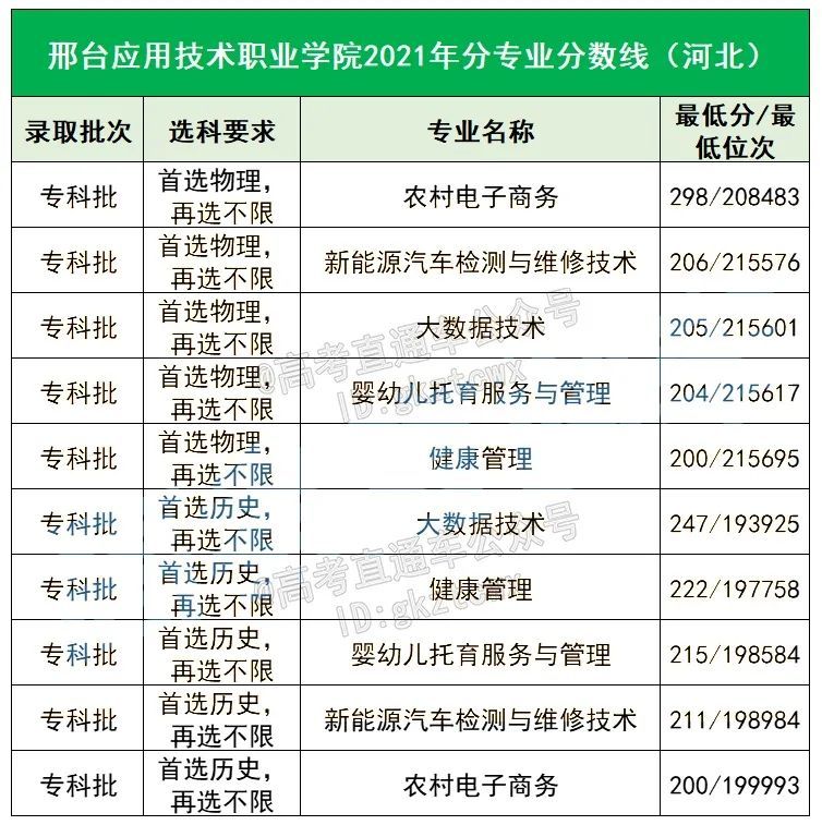邢台应用技术职业学校2021年分专业分数线:
