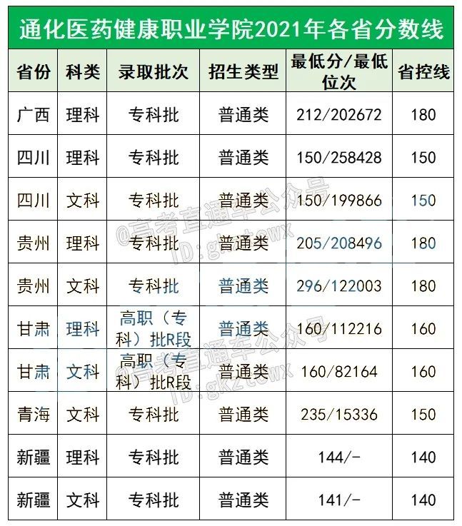 通化医药健康职业学校2021年各省分数线: