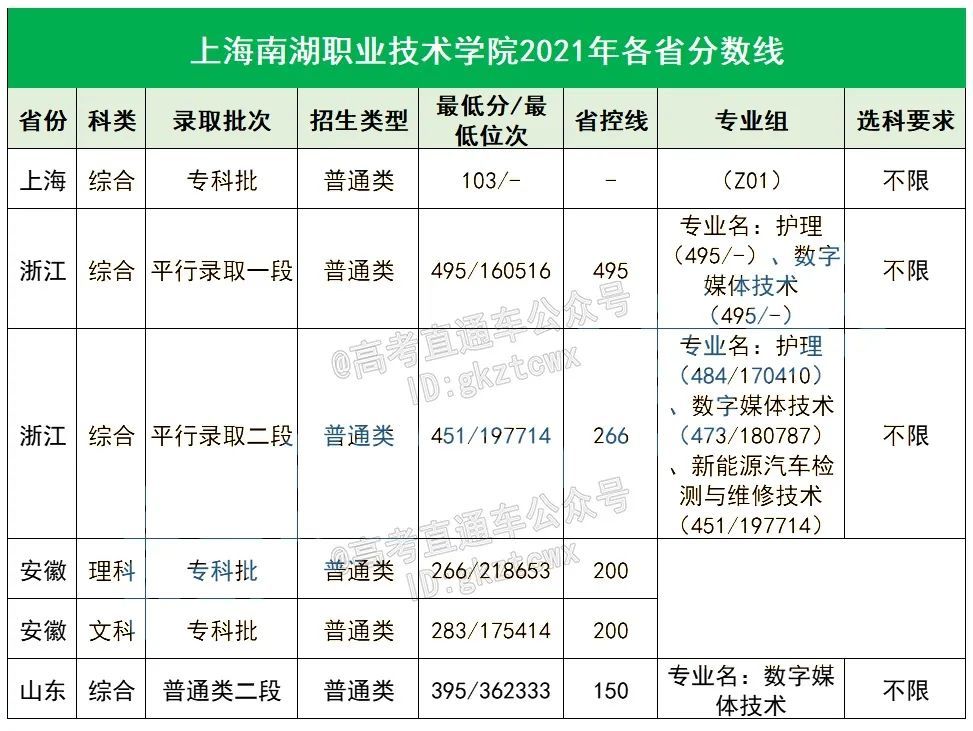 上海南湖职业技术学校2021年各省分数线: