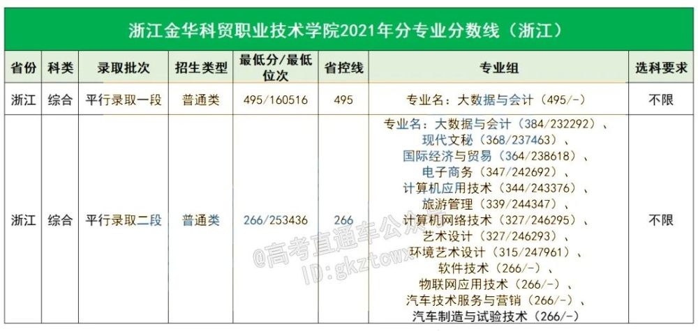 浙江金华科贸职业技术学校2021年分专业分数线: