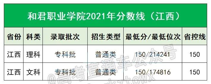 和君职业学校2021年分数线: