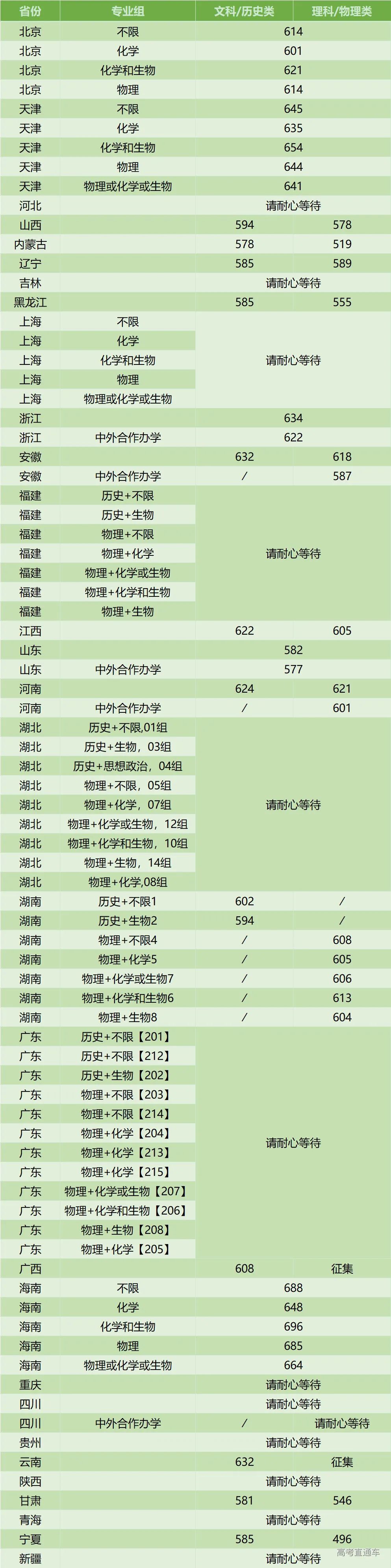 1.部分新增招生高校首年仅在所在省份进行招生,所以只有单个省份的投档数据。