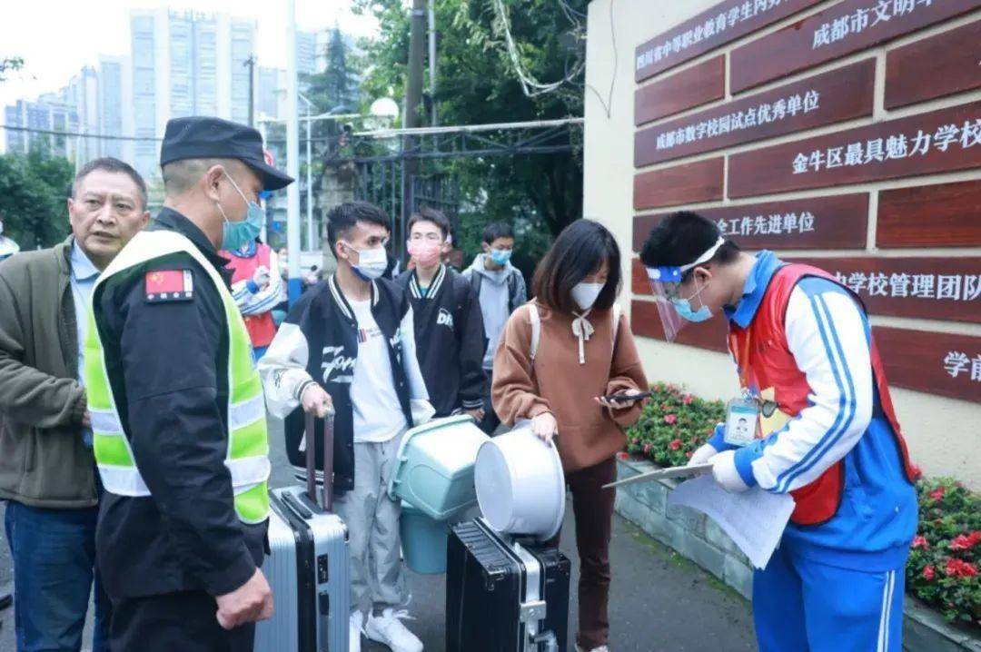 成都市工程职业技术学校在复学当日早上八点整,学校领导、老师及工作人员们已在校门口及各自岗位做好了迎接同学们的准备。各专业部学生会志愿者们,也是菁菁校园里靓丽的一道道风景线。师生们严格执行入校程序,佩戴口罩、保持距离,井然有序通过校园安检及体温测量通道,为安全返校筑牢第一道防线。