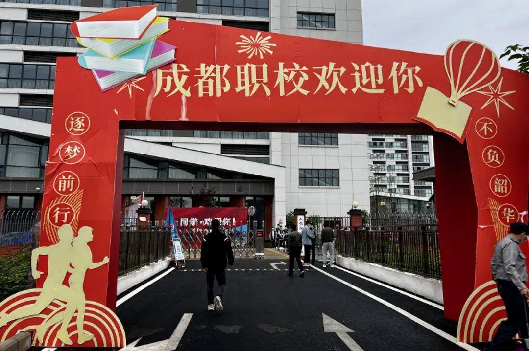 成都市温江区燎原职业技术学校返校日当天上午8点左右,校门口已聚集了来报到的学生及家长,根据学校疫情防控要求,学生独自进校,并配合查验“两码一报告”,整个流程井然有序。