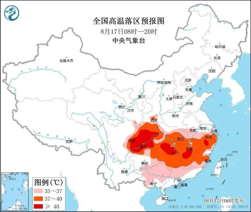 预计今天,陕西南部、安徽南部、湖北中南部、湖南、江西、浙江、上海西部、福建、四川中东部、重庆、贵州东部和北部、广西中北部、广东中北部等地最高气温将有35~39℃,其中,四川东部、重庆中西部、湖南中北部、江西中部、浙江西部等地的部分地区最高气温可达40℃以上,上述公众一定要注意做好防暑降温的措施。