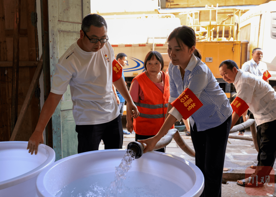 泸州市合江县榕山镇进宝村党员服务队为群众送去饮用水。川观新闻记者 何海洋 摄