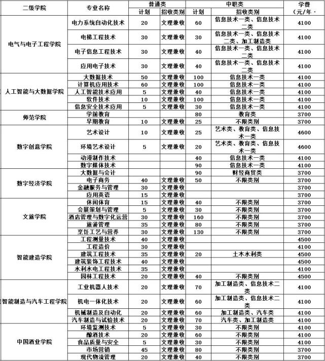 七、2022年单招招生计划表