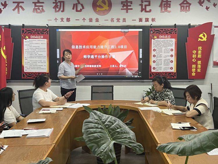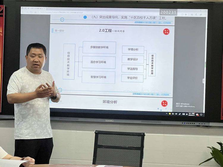 开班仪式上,校长杨迎山细致解读了三门峡市中小学信息技术应用能力提升工程2.0的目标任务和总体规划,明确了提升工程2.0的重要意义和具体考核标准。教务处主任师海燕从校本研修、教研组活动和教师个人层面分享了信息技术应用能力提升的新路径和方法。刘梅娟老师从一线教师的角度,对部分微能力点进行深入解读,阐述了微能力点的具体要求和实践建议,讲解通俗易懂,语言风趣幽默,所有老师都感觉收获满满。