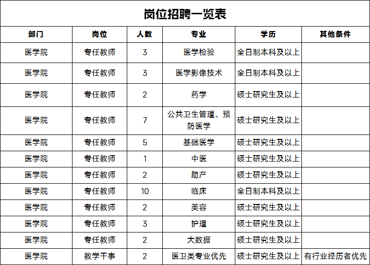 随着我校招生计划增加、规模扩大,扩编岗位虚位以待,期待您的加入。诚挚欢迎全国各地的优秀教师及从事行政管理人员加入我校!