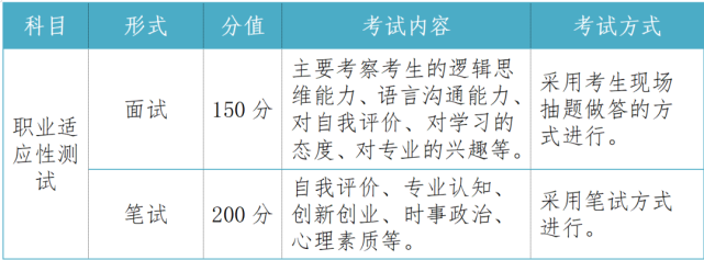 本次考试免予文化测试,只进行职业适应性测试(包含面试和笔试),考试内容如下: