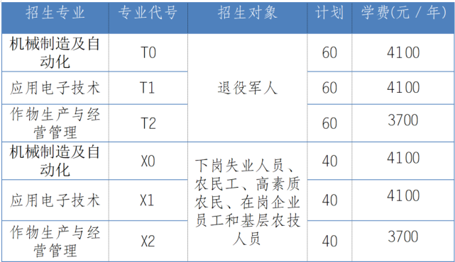 学校2021年面向退役军人等两类人员高职招生计划共300名,如下表: