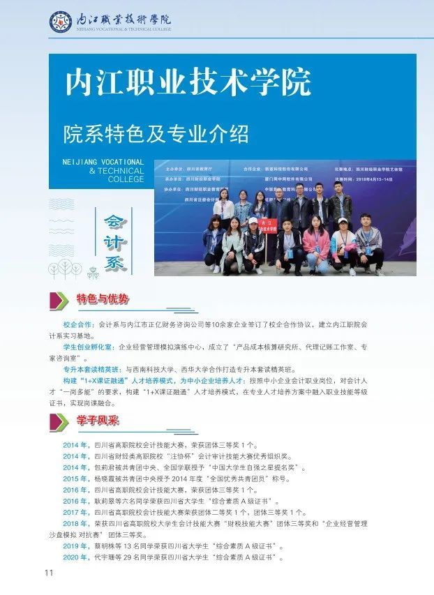 校企合作:会计系与内江市正亿财务咨询公司等10余家企业签订了校企合作协议,建立内江职院会计系实习基地。