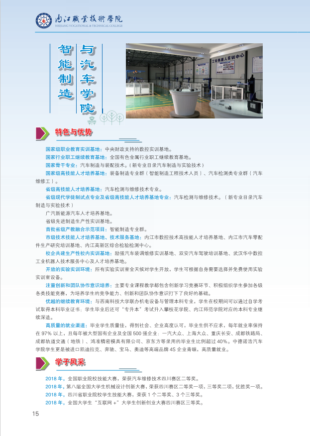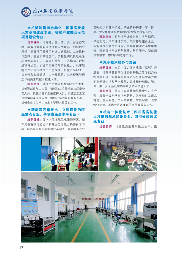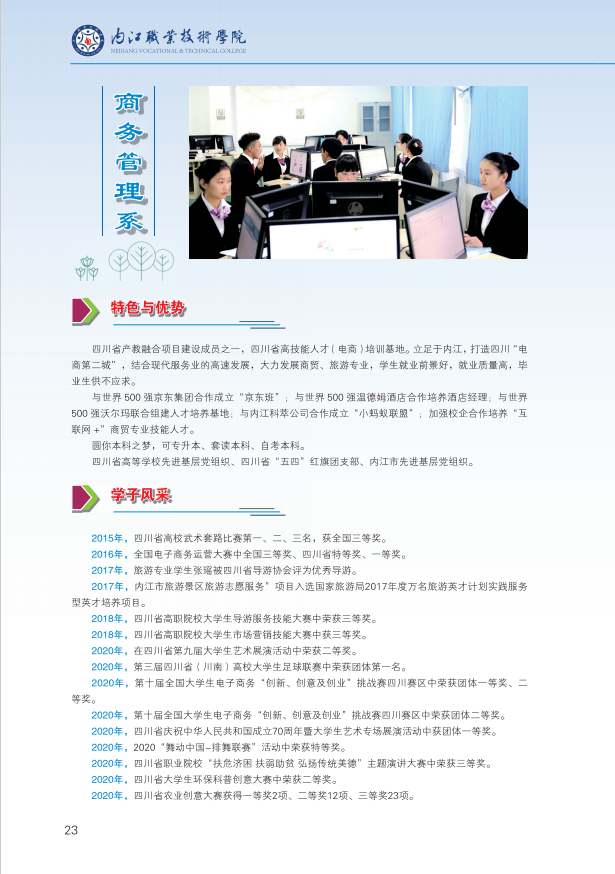 四川省产教融合项目建设成员之一,四川省高技能人才(电商)培训基地。立足于内江,打造四川“电商第二城”,结合现代服务业的高速发展,大力发展商贸、旅游专业,学生就业前景好,就业质量高,毕业生供不应求。