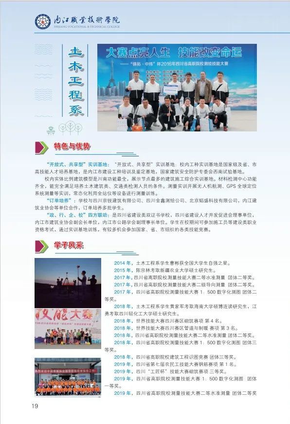 2019年参加全国及省级各类比赛,共获得国家级一等奖1项,国家级二等奖2项;省级一等奖项7项,二等奖项17项,三等奖24项,创意设计奖2项。