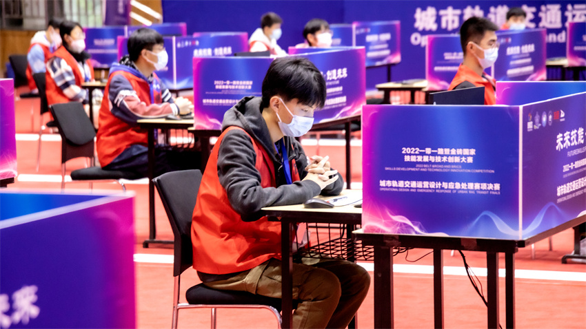 “我对今天的表现还是挺满意的,展现了我自己的实力与风采。我赛前认真准备,赛中全力以赴,希望赛出优异成绩。”刚从赛场出来的参赛选手张川东说,四川城市职业学校承办的2022一带一路暨金砖国家技能发展与技术创新大赛之城市轨道交通运营设计与应急处理赛项全国总决赛,这既是对学生的一次测试与考验,也是对职业技能的强化与提高。在这个平台上和来自不同学校的同学一起交流,切磋技能,共同进步,体现自己的价值,展示自己的技艺,审视自身的差距,鞭策自己更加努力的学习知识,掌握技能。