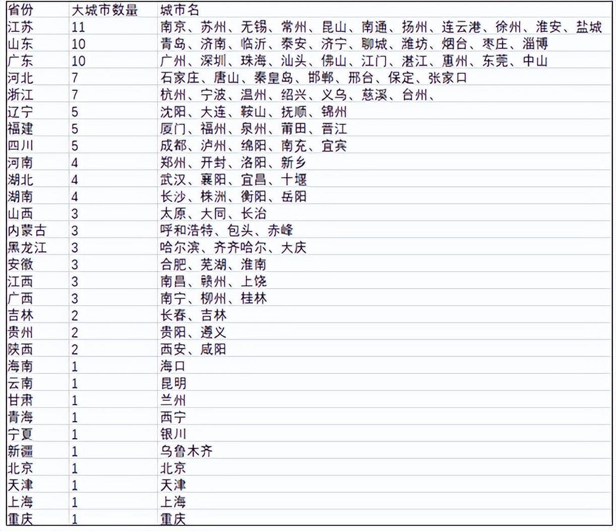 原标题:中国大城市榜单出炉!江苏数量最多,河南低于四川