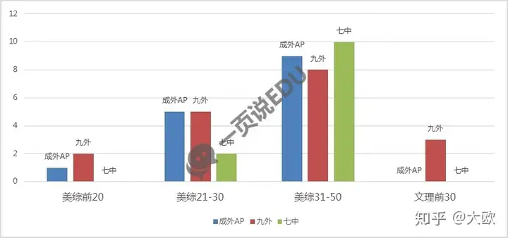 2.美国前30大学,九外最多,成外AP其次,然后是七中国际部;