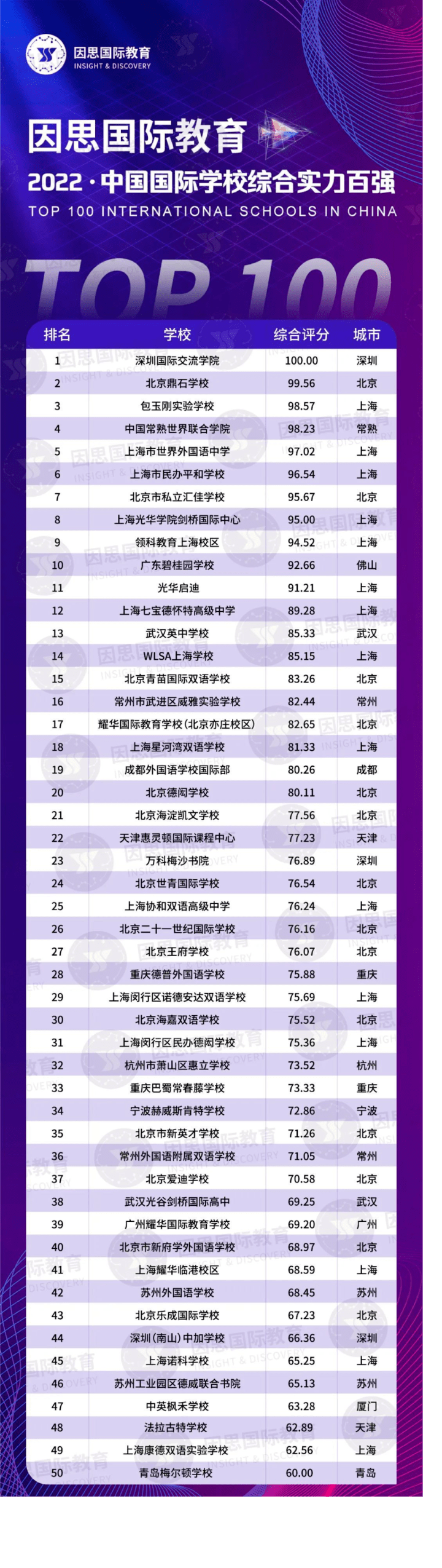 根据因思国际教育发布的中国国际学校综合实力百强榜单来看,成都外国语学校国际部首当其冲!